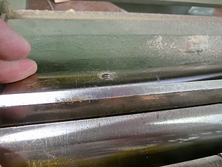 左側は鉋胴に固定するためのネジ、右側のは、側面にナットを埋め込む穴の位置。