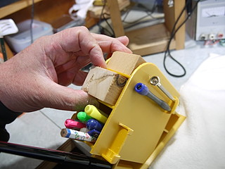 家のペン立てとの比較、家のペン立てはテスターと遠隔配信用のマイクが取り付けてある。