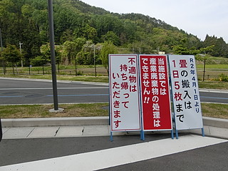 清掃センターの開業前に並んで畳を焼却しようとしたら、一日5枚までに変更されていた。3枚持ち帰る。ちなみに5枚で1800円の処理費用がかかった。
