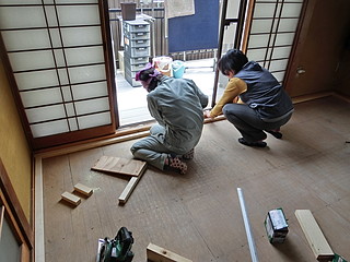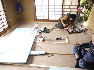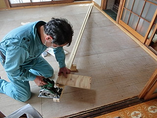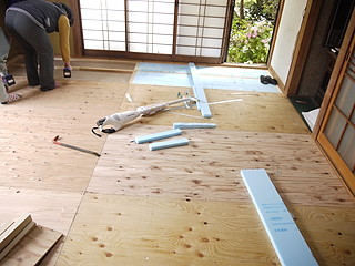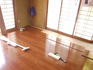 前回畳表を変えたのはいつだったか。父親の座るところはかびてきてしまったり、よく通るところは削れてしまったりしていたので、フローリングに変更することにした。