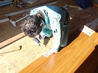下地作りでこの日は終了となり、次の朝6時からフローリング材を施工開始。