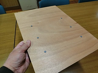 透明なアクリル塗料で腐食から守るために塗装してから、本体とネジ止めする。