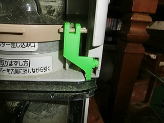 下の受けとなる容器が入っていることを検出するセンサを押し込む部品が折れてしまった。