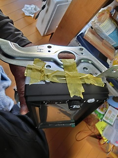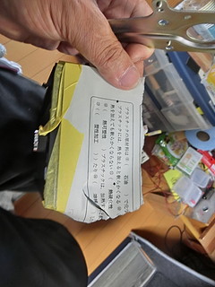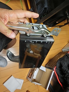 紙でサンドイッチして置いて、本体の穴の位置をうつしてドリルで穴を開ける。