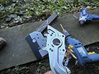 ブラケットの位置が全く違うので、今回はちょうど良いところに穴を開けることにした。