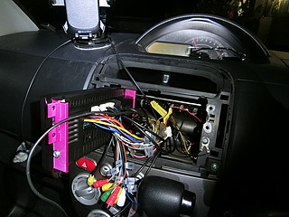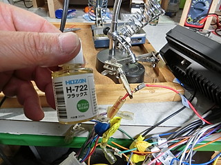 変換コネクタを買ってあったが、実際には今まで使っていたものも同じコネクタだった。中国製のカーステレオは裸線が出ているだけなので、ギボシ端子に直接はんだ付けする。フラックスを利用して上手く付けることができた。