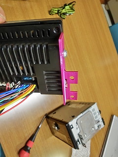 今回のものはこんなに筐体が薄いので取り付け部より後ろ側で固定する以前の鉄のものでは全く用が足せなかった。本体が軽いため、強度も十分な感じ。