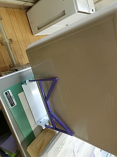 今年度から学校の児童数が増えてきたので、お昼のお盆を立てておく収納場所も拡張することになる。