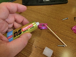 その理由は、蓋の爪が両方折れていて固定されなくなっているため。今回ここを直すことにした。