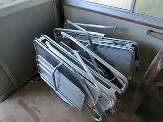 学校の作業時に使う荷車。先日の作業の際に止めねじがどこかに行ってしまった。