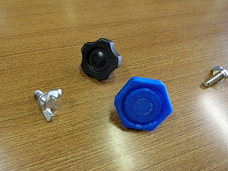 この黒いネジが無くなったので、ネジを買ってノブを3Dプリンタで出力することにした。