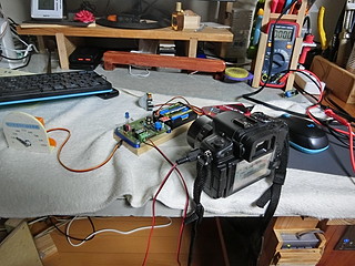 ネット情報から、こんな形でリモコン撮影ができることがわかった。回路は空中配線でケーブルの途中に仕込んだ。