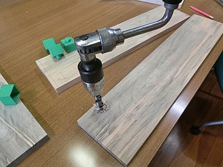 中学校の木工室を借りて、ほぞ穴とほぞを木工機械で加工して校長室に持ち込む。