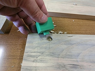 稼働部の接続はこんな感じ。上下から押さえつけられるので、抜けたりばたついたりすることも無い。角材だと大きさが一発で決まってありがたい。