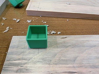 以前バタフライテーブルを作ったときは稼働部を木工旋盤で加工したが、3Dプリンタで丸く製作しはめ込むことにしてみた。