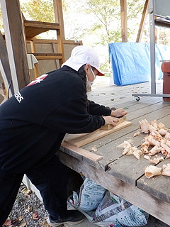 マツノザイセンチュウを振りまくマツノマダラカミキリの幼虫を食べてもらうためにお宿を作る。