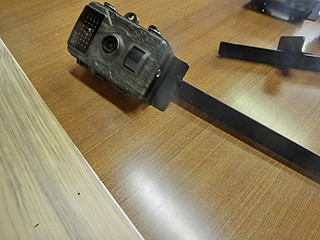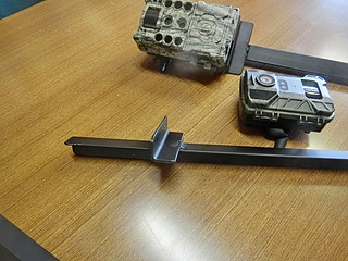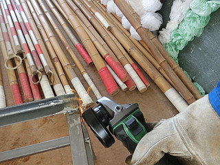 木を切った場所に設置する無人カメラ用にスタンド製作。L字アングルを切って溶接/塗装。