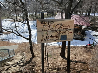 今年の6年生の卒業製作。林間の案内看板。描いた下絵をスキャンしてレーザ加工。その後子どもが色つけ、塗装で仕上げた。