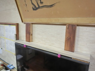 土日の学校で少し作業を行った記録 この時期に、本校の先生が立て続けに入籍をされた。めでたいので時計に入籍日をレーザー彫刻して贈ることにした。 文字盤は白だったので、木を薄く削ってレーザー加工機で作業した。 校長室のテレビ前にいろんな贈り物がたまってきたので、テレビの上に台を付けることにした。 元々、3Dプリンタで作った固定用のアームがあるので、その上に載せるだけにして、板を加工。 下がすっきりした分、全体の見ためは賑やかになった。